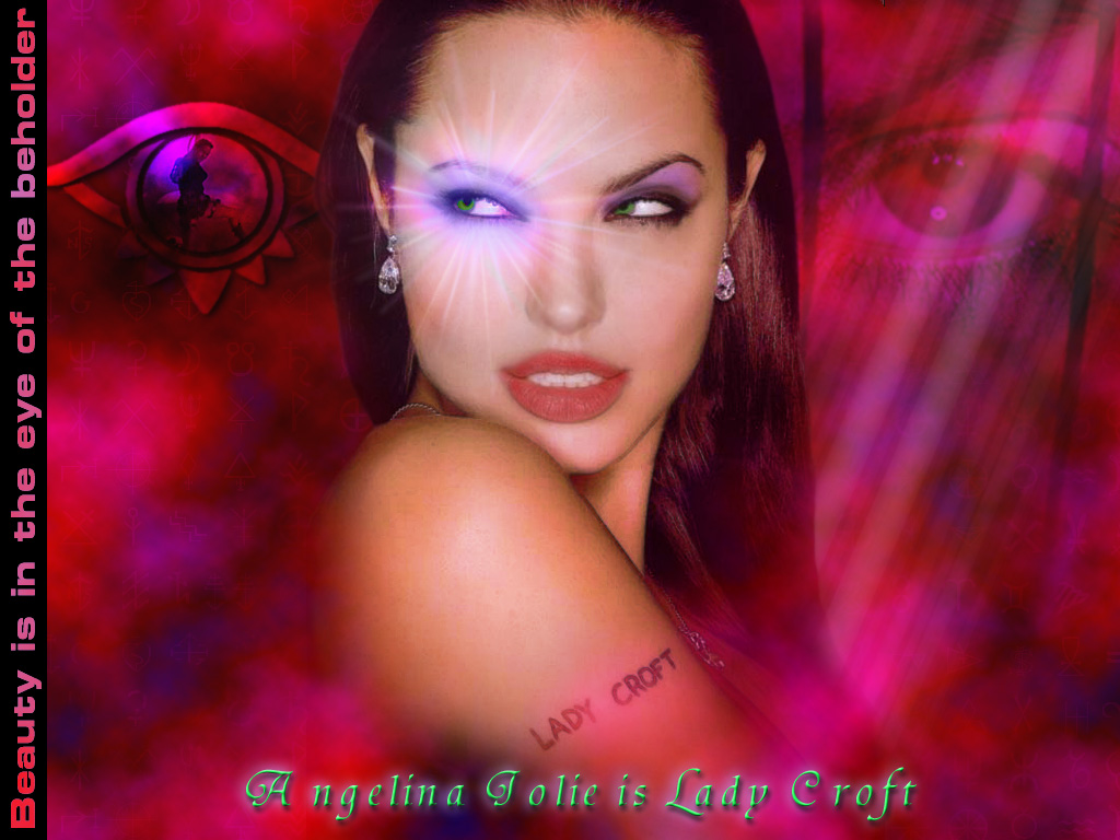 Comments: OMG! I never thought I'd think of Angelina the way I do when I see this image :P :P What a hottie! Anyways...I really like the color scheme here. Lots of red with blue, purple, and green highlights. The feeling I get from this design is one of elegance, sleekness and beauty. But, there is also a touch of ruggedness added in by that eye on the left side and the blocky text lined vertically. The perfect combination to a perfect lady in my opinion :)
